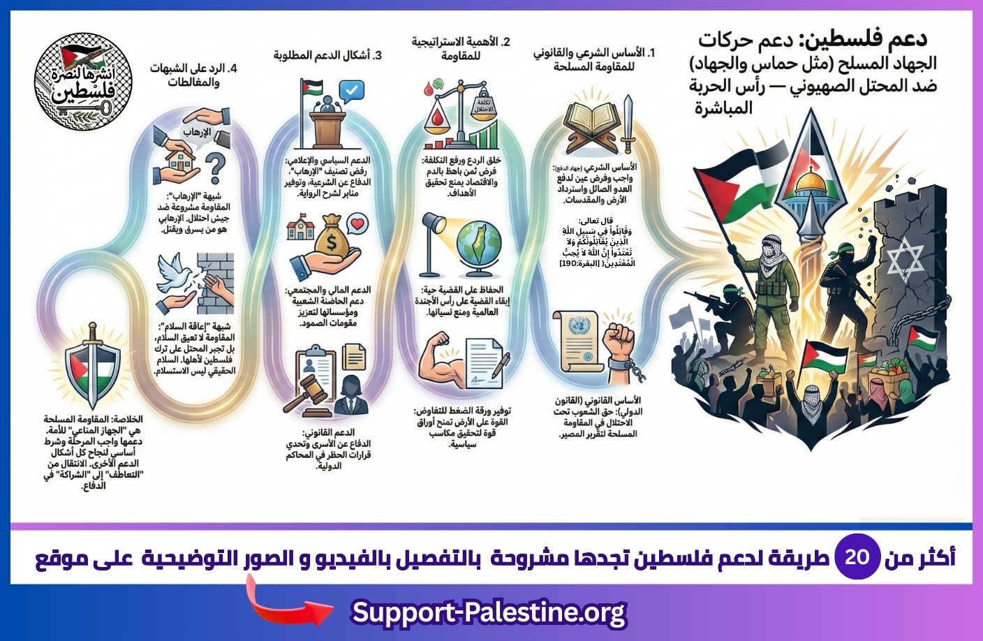 بعد استعراض جميع جبهات الدعم، من التحرك الفردي والشعبي، إلى الضغط الدبلوماسي والاقتصادي، وبناء التحالفات العسكرية، تأتي هذه النقطة لتلامس قلب الصراع و”رأس الحربة” فيه: دعم الفصائل المجاهدة وحركات المقاومة المسلحة على الأرض (مثل حماس، والجهاد الإسلامي، وغيرها) التي تقف في خط المواجهة المباشر ضد المحتل الصهيوني.